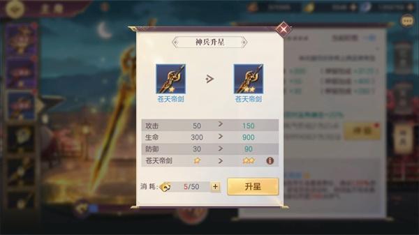 每把神兵可以从1星培养至5星、升星需要消耗同名神兵碎片,神兵星级变化后将会获得技能效果强化,更容易在战斗中扭转战局!