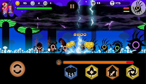 1、点击图标进入游戏,点击屏幕开始探险之旅;2、随着人物向前移动,消灭前方阻碍你前进的怪物;