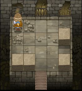 再次回到第一个房间,使用钥匙打开最左边的小门,里面有把锄头。