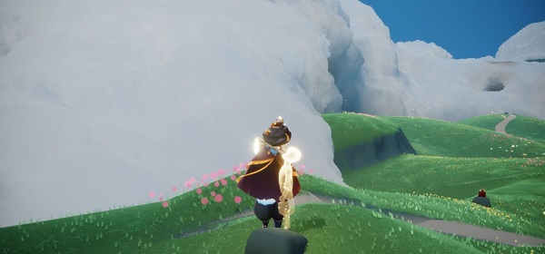 刚进入场景就先爬上眼前的巨大岩石(对你没有听错),我建议先进入洞中,后从岩石后方爬上,有一条岩石的脉络直通山顶,不许飞行,然后会得到一个光之翼(图中已经得到过)。