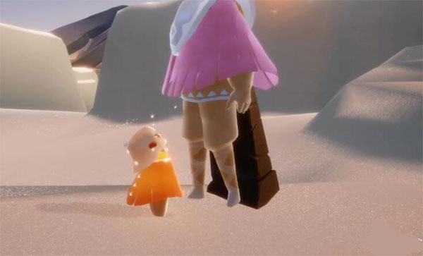 4、【拯救先祖,回溯历史】在探索王国的时候,旅人会在各个地点找到泛着蓝光的先祖灵魂。跟随灵魂的记忆碎片,旅人将了解更多关于先祖时代的历史和故事。用蜡烛点亮石像后,旅人会将先祖灵魂返送回天际。