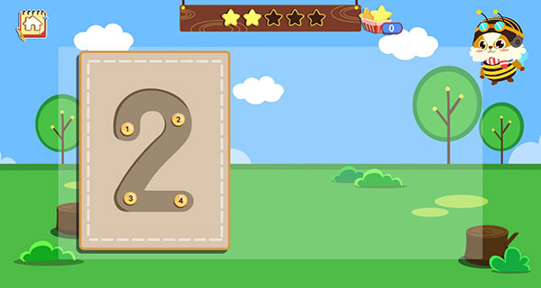 4、通过1、2、3、4填写数字步骤来引导宝宝笔画。
