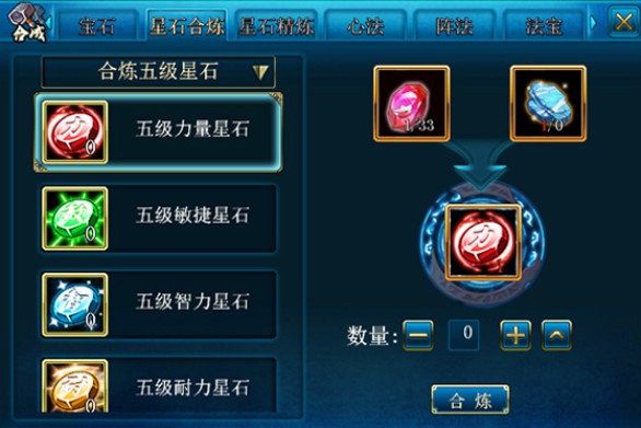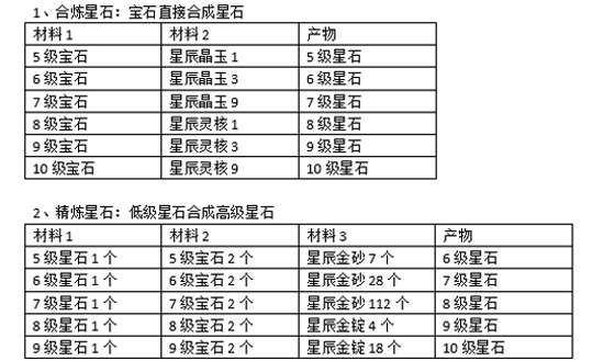 通过配方我们得知星石的合成路线分为两类,一类为星石合炼即宝石直接合炼同等级的星石,直接合成,短时间内见效,收益早。
