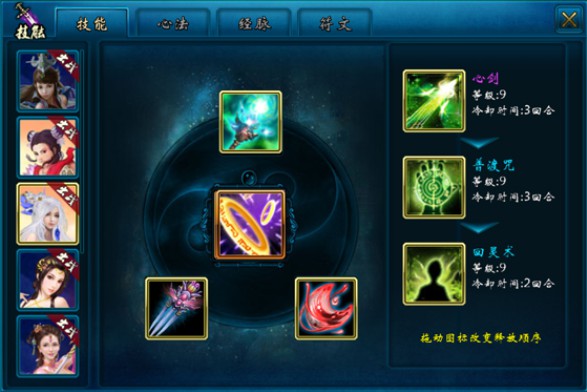 1、玩家可以为每个散仙配置技能心法,也可以调整技能心法的释放顺序。