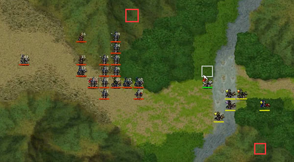 开场我军城内凌云皓与友军不可控 敌军前三个方块进攻其他不动 (圣佛被动出击)