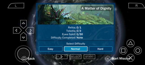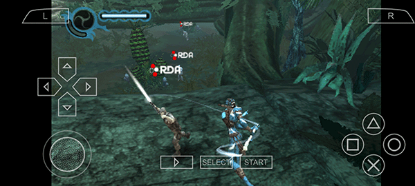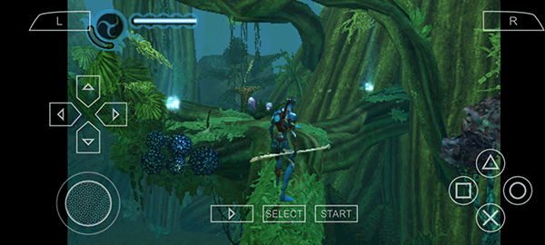 4、进入游戏后,玩家将操控阿凡达进行冒险,左边控制人物的移动方向,右边方块、三角控制攻击,×号控制跳跃等操作;