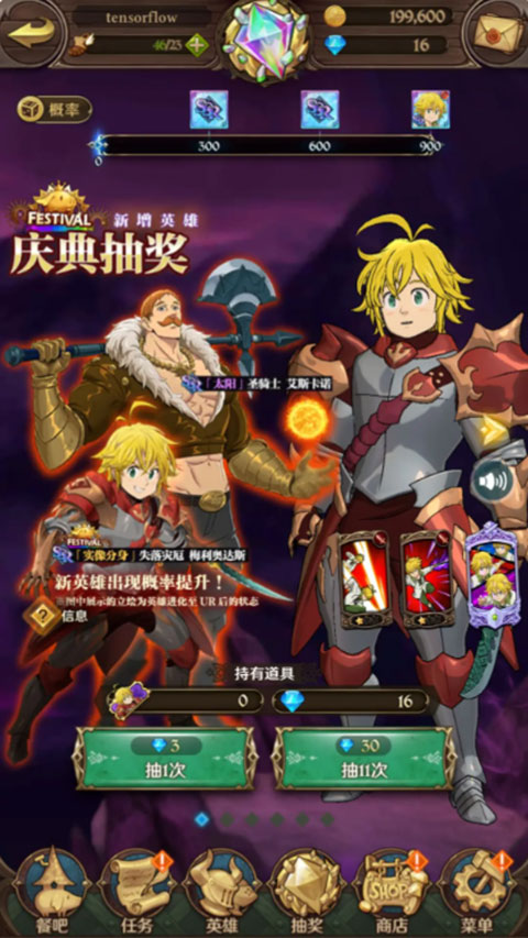 《七人传奇光与暗之交战》日服是一款正版授权的卡牌RPG手游,改编自人气动画“七宗罪”。玩家将化身英雄,在布里塔尼亚大陆上挑战各种BOSS和敌人,拯救王国。游戏拥有丰富的角色收集系统,梶裕贵、雨宫天等顶级声优配音更添沉浸感。新手可以通过推图和任务快速获取资源,建议优先抽限定角色而非 SSR 装备,因为后者效率太低。