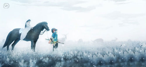 龙马花雪毛,金鞍五陵豪,秋霜切玉剑,落日明珠袍。马蹄飞跃寒光闪,二人足点马背起身一跃,立于黛瓦之上。敌人步履紧跟,持剑对峙,二人相背,无命扬起嘴角,向青衣耳语,“我的后方就交给你了…”青衣回以浅笑,瓦声迭起,似有号角吹响,鼓声跌宕……声落,两双凌冽的眼睛从横剑后显现,一抹深红血痕标记在脸颊,这是属于“侠”的光辉。