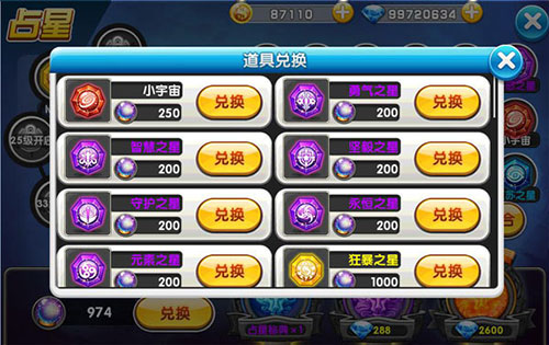 星盘威力将影响人物自身战斗力,融合星石不仅能提升星石等级而且能获得星盘积分,而花费相应星盘积分则可根据玩家自身需求对应相应星石,不用苦苦拼人品反复占星了。通过兑换获取需求的星石加以培养,战斗属性会得到大大提升。
