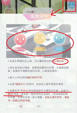 超开心:基础状态下,送两个+50亲密度的礼物→超开心。