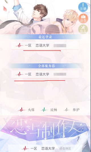 然后是选择游戏的区服,如下图所示,目前都是固定的游戏服,没有其它的区服可选择;
