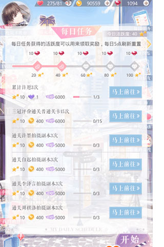 可获得金币、课程卡等,任务100/100完成可以获得该线男主100好感度。开特权卡可以自动进行,刷完一条线大约两小时。