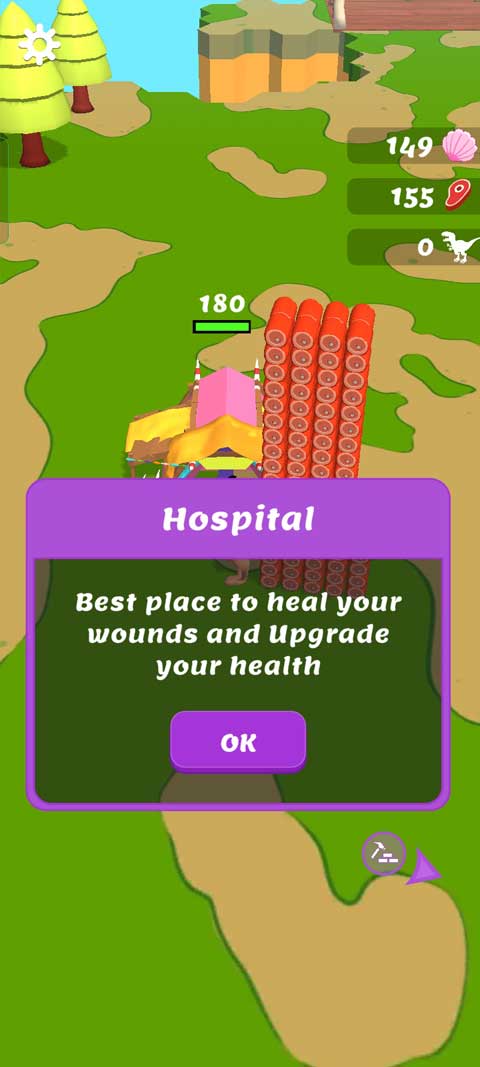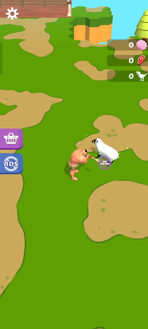 2、游戏开始会有一个紫颜色的箭头指引你到达指定地点,然后用你手上的武器将野生的羊杀死获取很多的肉。