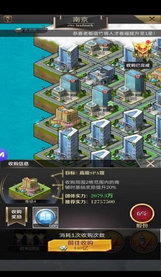3、同时出现商业楼和spa馆的情况下,优先点击spa馆,并且spa馆的等级要在四级以上。因为四级的spa馆,可以提高附近2格商业楼的阅历提成,而五级的spa馆,可以提高整个地图的商业楼的阅历提成。