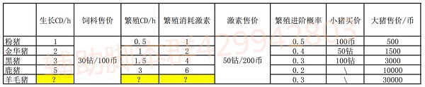 1、迅速怼出高级猪,直接买饲料和激素进行合成,目前没有合出羊毛猪,脸黑没办法。