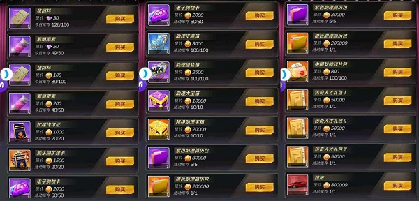 【地产商店】不管是住哪个小区多少楼层的,每天必抢购的三大件依次是计划书>金表>银表,然后再根据自己的具体情况,可以依次选购扩建卡(10w)>扩建卡(15w)>橙色人才碎片(25w)>施工蓝图(50w)>扩建卡(20w)>施工蓝图(75w),帝王海阁前三的大佬将这些全部扫空还有富余的话,可以继续买阅历想和项目搜寻券。