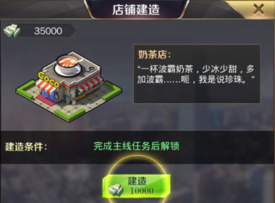 期间你会在游戏中的左下角中查看到当前的主线任务,主线任务可以很好的引领玩家一步步成就商业王国,同时也能获取到更多优秀资源,待收获到起步的第一桶金时,尝试着用这些资金购置一家店铺。