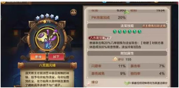 解决的方法是,放弃缘分法宝,抛弃那些属性加成,达成开拓更强实力的可能。换成新法宝八荒混元锤,这个法宝可以最大程度解放哪吒的平A技能,而如果同时触发这个法宝本身的技能,3倍的伤害也绝对爽歪歪,而作为黄法宝加成属性比橙法宝多,从一定程度上弥补了损失的缘分属性。哪吒的属性培养选择,我个人建议哪吒走格挡流。格挡高的同时除加上大招化圣效果的,打出一套5连击对面会很绝望
