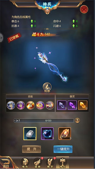 神兽助战分为几个方面,随着等级提高逐步开发,分别为图鉴、神兽、神器和魔魂。
