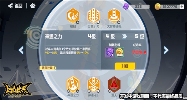 肆虐天地的大罗神通棍从天而降,对自身2格范围内的所有敌人造成大面积杀伤,距离越近伤害越高。