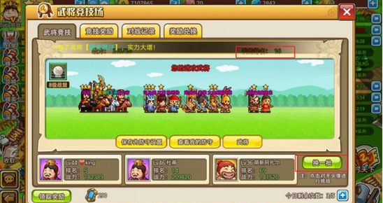 3、武将竞技场每天晚上21:00结算,按照竞技排名发放奖励。挑战获胜,提升最高排名可获得一次性金币奖励。