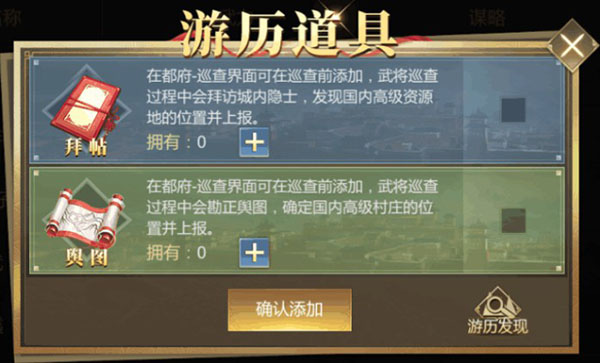 巡查前勾选使用拜帖时,会在巡查过程中游历,发现国内高级资源地坐标自动上报。