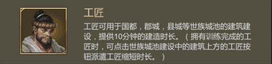 文治分别有安民、分工、劝农、开市;文治主要是减少建筑耗损与时长,提升各类资源产出。