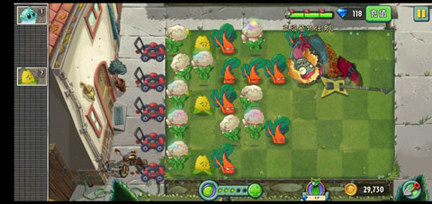 总结思路:是后面几波尽可能守住没有小推车的一路,有些关卡墓碑会很多(墓碑能挡超能菜花的魅惑伤害)超能菜花无法对巨人魅惑。