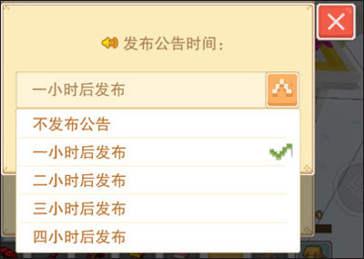 发布公告的时间有5种选择:①不发布②一小时后③二小时后④三小时后⑤四小时。