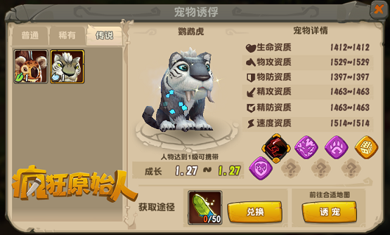 在《疯狂原始人》中宠物技能有多少种?宠物的技能包括:狂暴技能,战宠技能。