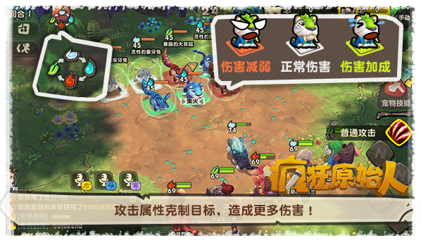 疯狂原始人爱奇艺版本是由爱奇艺官方研发和发行的一款回合制冒险游戏,支持爱奇艺账号登录,上线就会免费赠送新手玩家各种礼包和奖励,包括装备打造岩画40级*1、百炼石*5、单叶草*5、紫色万能碎片*2、银币*100等等,甚至在商城当中还能免费参与10连抽,让你获得自己想要的宠物。该游戏已经获得梦工厂人气电影正版授权,采用3D引擎打造了高品质画面效果,不仅忠实还原了当中的剧情,还带来了我们所认识的小伊大家庭、咕噜家族等角色,全都是电影中熟悉的味道,而玩家将化身为一位原始人和上述角色共同冒险,探索里面的宝藏。此外,疯狂原始人爱游戏带来了有趣的宠物系统玩法,把他们分为普通、稀有、传说3种品质,玩家则需要根据不同的品质去训练以及组合搭配它们,还支持在外出时骑乘可爱的宠物,减少跑图时间。新手战斗技巧介绍