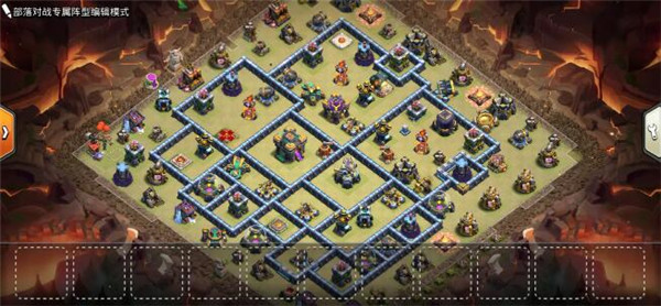 5、阵型为多岛结构,鸟炮内置,持续输出,大本营处陷阱众多,有效防止飞艇爆本