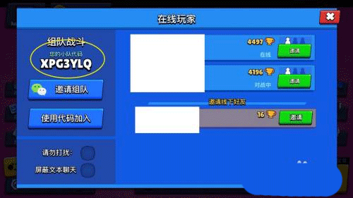 3、如图,小队代码生成后就建立好了小队,然后我们可以在游戏邀请游戏好友加入或复制代码发给微信好友邀请加入