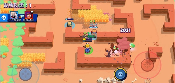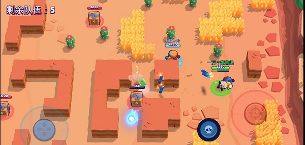 荒野决斗是单人或双人战斗模式,每局10名玩家,最终赢家只有一位/一组。通过摧毁木箱或击杀敌人获取能量块,提升攻击力和生命值,毒雾会不断从外向内包围,英雄身处不断缩小的安全区域中,淘汰其他玩家,生存排名越高则奖励越丰富。