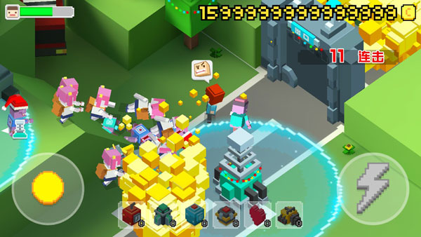 游戏中的操作采用了虚拟摇杆,玩家可控制角色的移动,而闪电标志则是人物加速奔跑的操作按钮。