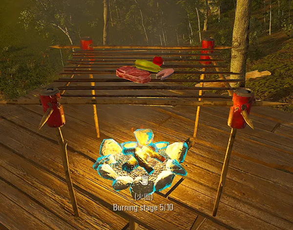 比如我们用火圈烤食物时,以5/10为基准,我们可以不频繁的去查看食物的加热状态,当burning stage变成6/10的时候,我们可以去查看一下,此时正常情况下食物已经处在hot(热的)slightly cooked(微熟)的状态了,我们只要耐心的再等上1分钟左右即可获得烤熟的食物了!