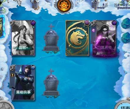 首先看看对战区域,在对战区域上双方场地上都有8个契灵的位置,也就是说每场最多可以上场8个契灵。如果场上出现墓碑的话,就是代表这个位子上的契灵已经阵亡了。