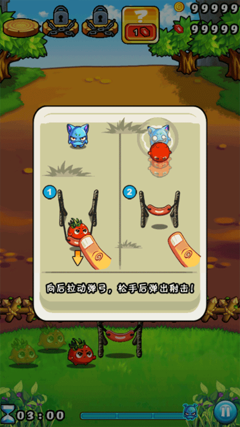 4、进入游戏后,玩法非常简单,玩家将需要通过手指拉动弹弓来进行射击;