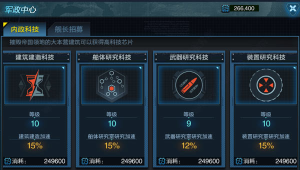 军政中心提供军政科技的研究功能,研究科技可以提升基地的发展效率,所以有时间一定要优先将科技提升起来。