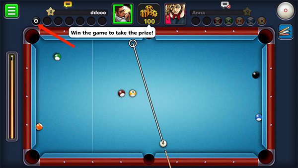 4、瞄准自己要进的球会有引导线,如果是对手的球,则会有红色禁止的提示,
