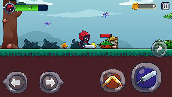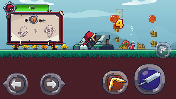 4、剑的左边是飞镖,可以在水平方向内来回飞,远程攻击力会比剑更大,当你打败敌人后,会有金币可以拾取;