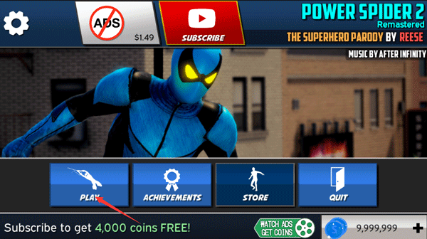 1、下载安装好Power Spider 2动力蜘蛛2,运行游戏,点击play开始游戏;