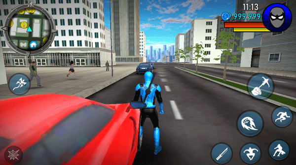 6、蜘蛛侠绳索英雄采用第三人称视角,玩家将扮演最伟大的英雄蜘蛛侠,打击邪恶的罪犯,维护城市的和平