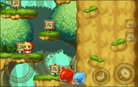 1、游戏操作屏幕左下方的虚拟按键可以控制小红帽左、右、下移动,在光圈上按向下方向键还有切换地图的功能。屏幕右下方的鞋子图标可以实现跳跃,锤子图标则可以发动攻击、拾取物品、开始对话。