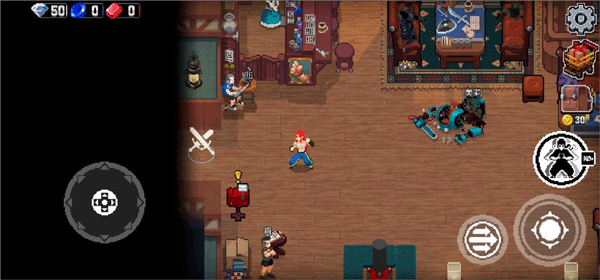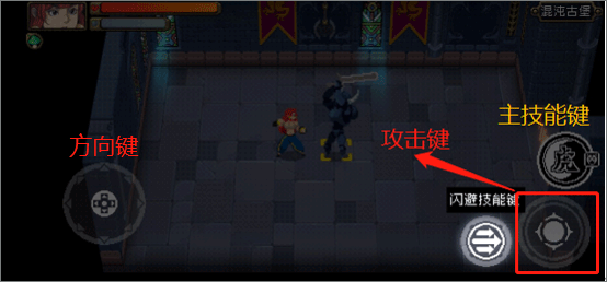 1、左下角轮盘操控角色的移动,右边为攻击键和闪避键