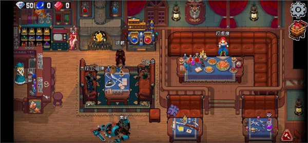 ◆这是与之反差极大的主游戏界面,满眼的像素风,虽然固定了视角但细看之下,场景物品制作的还挺细,桌子上的武器和柜台上的瓶瓶罐罐,包括【细看】后的只梅,以像素风来说,能表现到这种程度算非常不错了,除非是套用的引擎模版,那就没法表扬了,要是制作组自己制作的那就值得推崇和表扬;