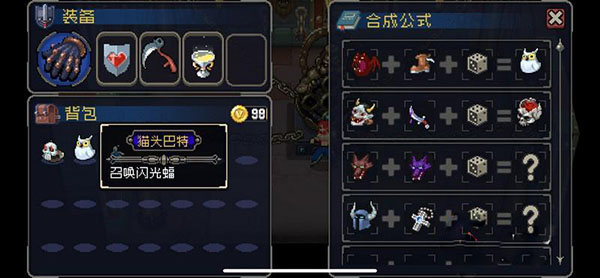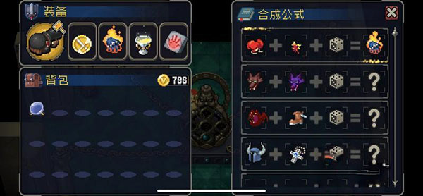 在许多房间中都能获得道具,一些道具通过组成也就是我们所说的装备合成,能拿获得效果更强的道具,道具的合成是在特定场合进行的。