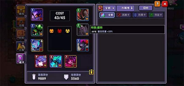 部位属性:每个魂卡的左上角会有颜色标记,红色的为武器,蓝色的为防具,绿色的为首饰。方便搭配种族属性,要注意的是相同的卡片不能装配。