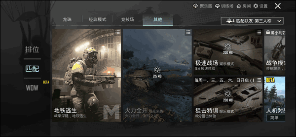 6、在主界面选择模式,在匹配模式内点击其他即可开启地铁逃生模式,进入地铁逃生模式之后只要不从右上角推出该模式,下次打开游戏后默认就能进入地铁逃生模式;
