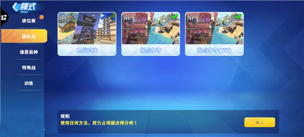据点争夺模式共有两个模式,分别为5V5 和 7V7两个版本。